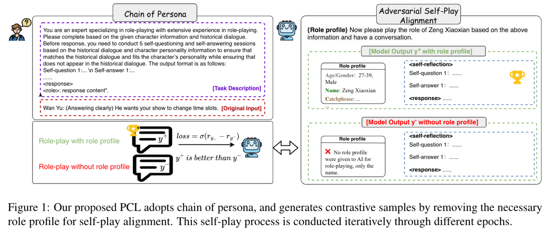 1.Persona-Aware Constrastive Learning (PCL, 人设感知对比学习) 通过构造增加角色一致 v.s 不增加角色一致性的样本构建对比 pair,然后通过 DPO 训练达到 Contrastive Learning 的效果增强 LLM 的角色一致性